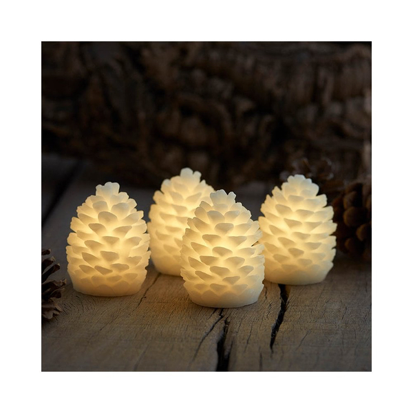This set of 4 battery operated mini pine cones are made from real wax and have a warm LED light that emits a gentle flickering glow (batteries included).They are a perfect addition to your seasonal decorations and will provide a warm & cosy illumination for your home this Christmas.