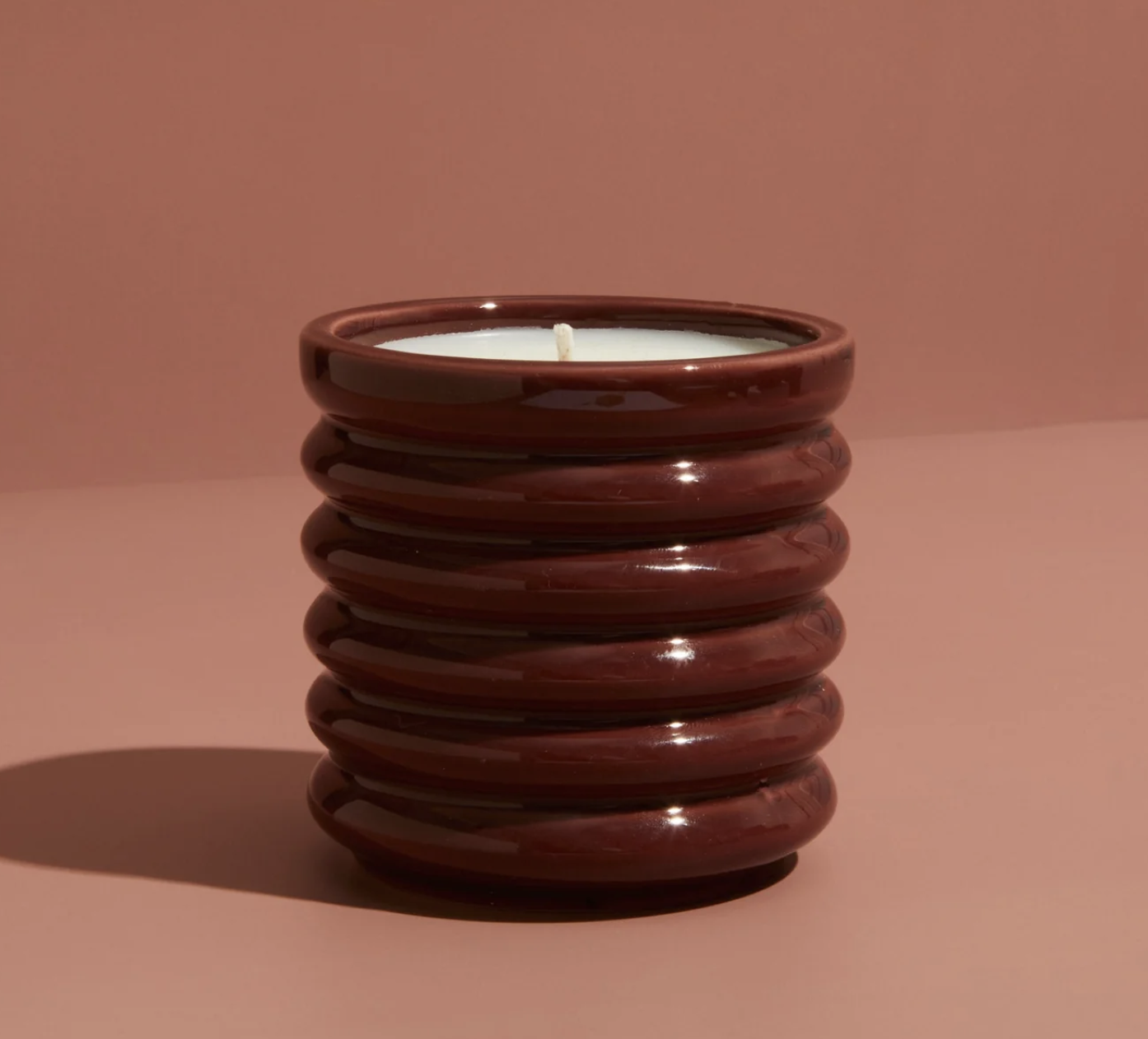 Encased in a glazed ribbed burgundy ceramic vessel that is designed to be repurposed after use, this candle with its rich Floral Botanic scent, adds a touch of modern artistry to any room. The high-quality plant based wax blend ensures a clean and even burn, releasing a long-lasting fragrance that envelops your senses without overpowering the space.