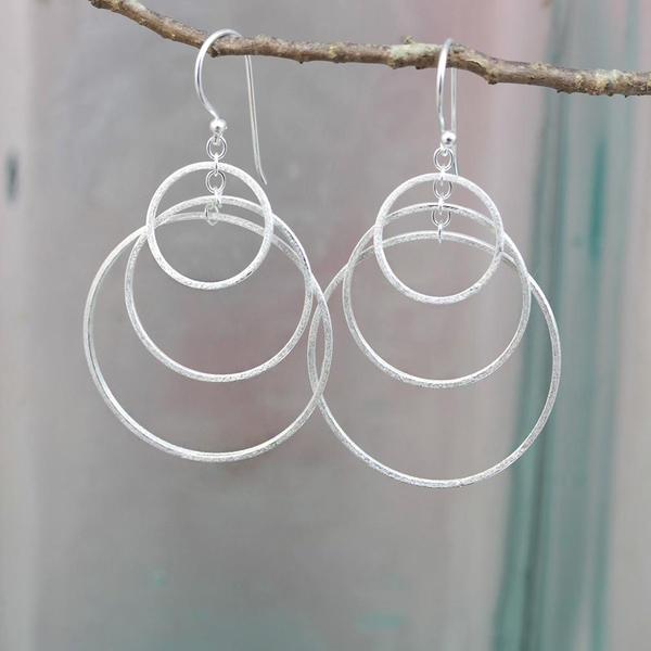 Both elegant and stylish theses sterling silver earrings have three overlapping hoops and a luxurious satin finish.